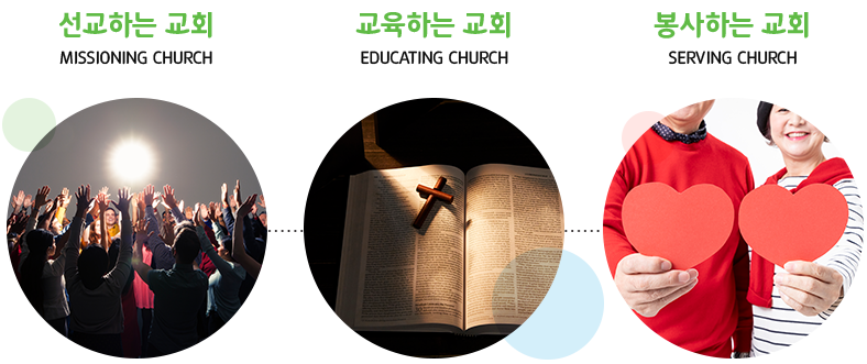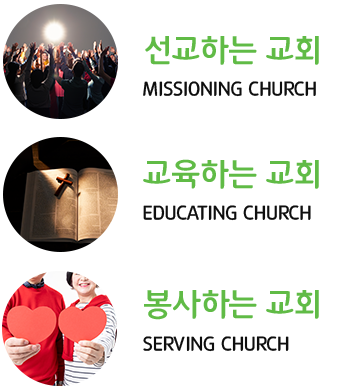 선교와 교육과 봉사, 이를 실천하면서 하나님중심, 교회중심, 말씀중심의 성경적 교회를 이루어 가고 있습니다. 그리하여 예수님이 기뻐하시는 교회로, 구원을 위하여 힘쓰는 교회로, 하나님의 영광을 드러내는 교회로, 주님이 기뻐하시는 교회로 계속 세워지길 원합니다.